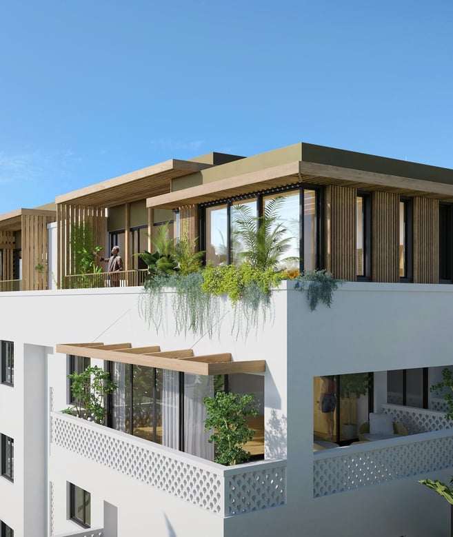 Mit weitläufigen privaten Terrassen, grünen Pflanzflächen und einem einzigartigen Design bieten die Mwangani SkyLofts ein Höchstmaß an Privatsphäre und Luxus – ideal für moderne Stadtbewohner, die Ruhe und gleichzeitig die Nähe zum urbanen Leben suchen.